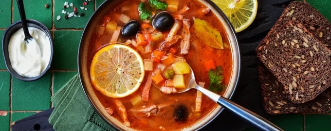 - Soljankas sacepums ir gatavs – tas tikai jānoņem no uguns un jāļauj nostāvēties 10-20 minūtes. To var pasniegt ar dillēm un skābo krējumu.