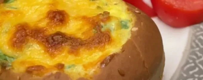 Omlete bulciņā ar kūpinātu krūšu gaļu