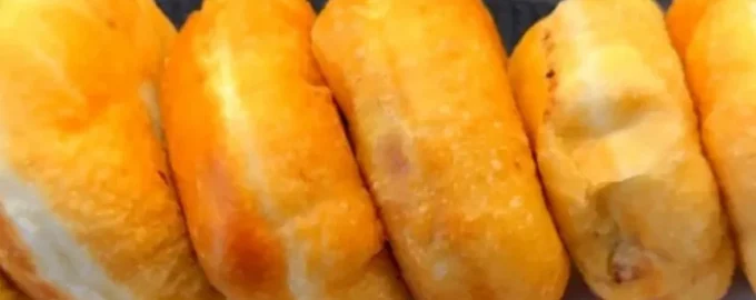 - Mīca mīklu, sadala to 12-14 gabaliņos. Katru no tām izrullē, ieliek pildījumu un veido pīrāgu. Visus pīrādziņus apcep augu eļļā, līdz tie kļūst zeltaini no abām pusēm.